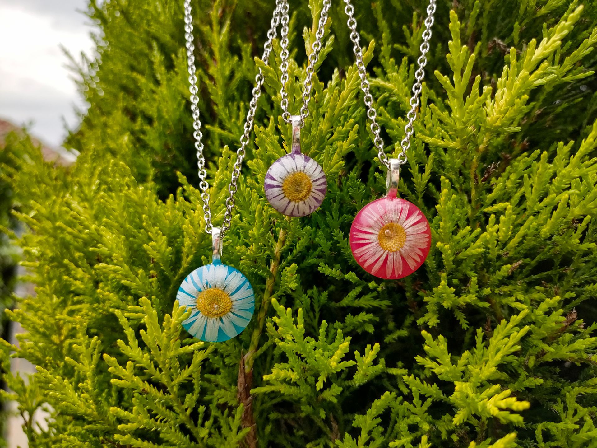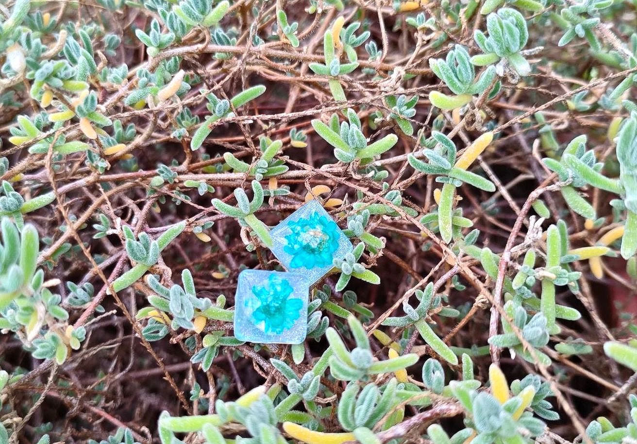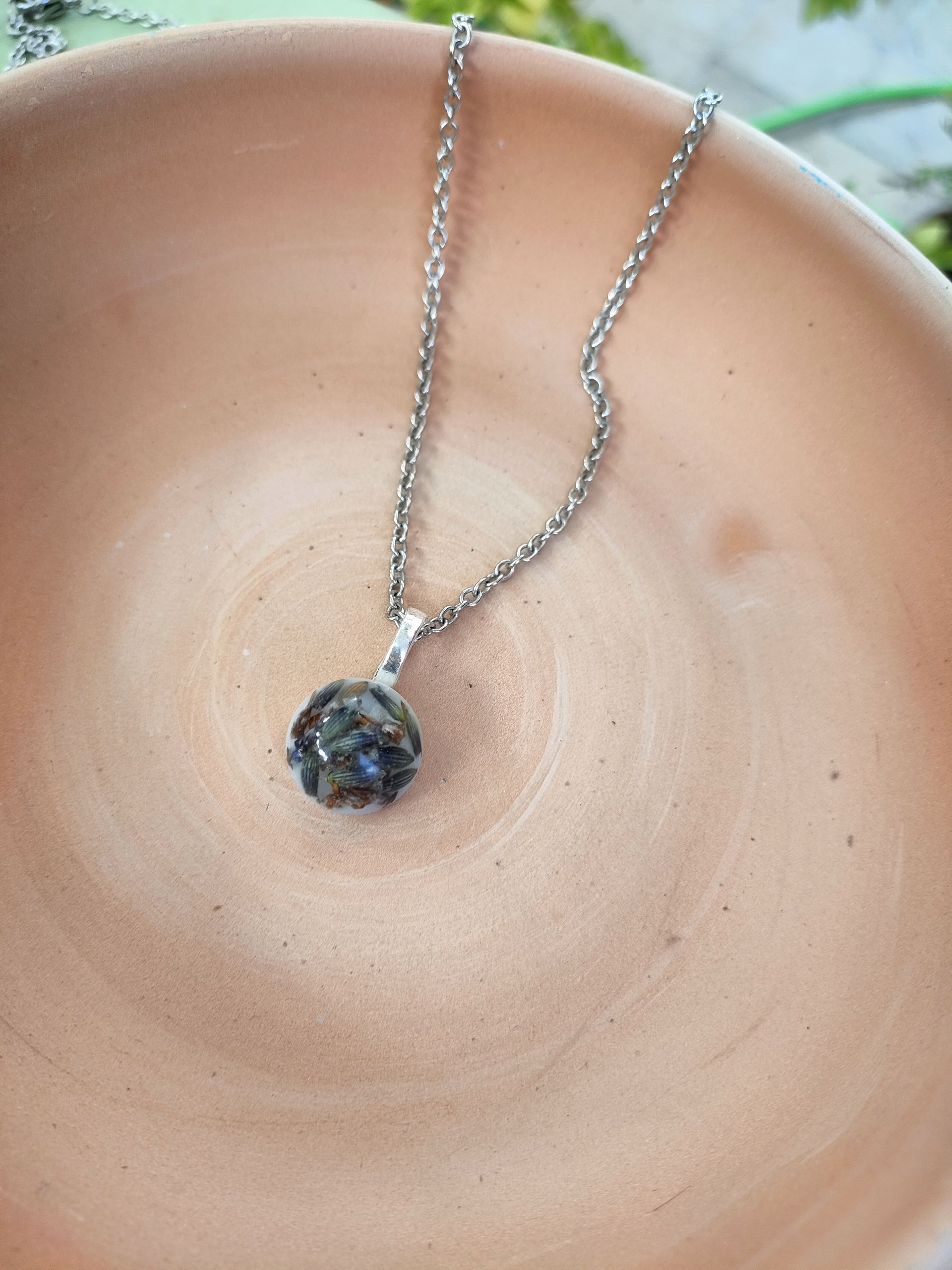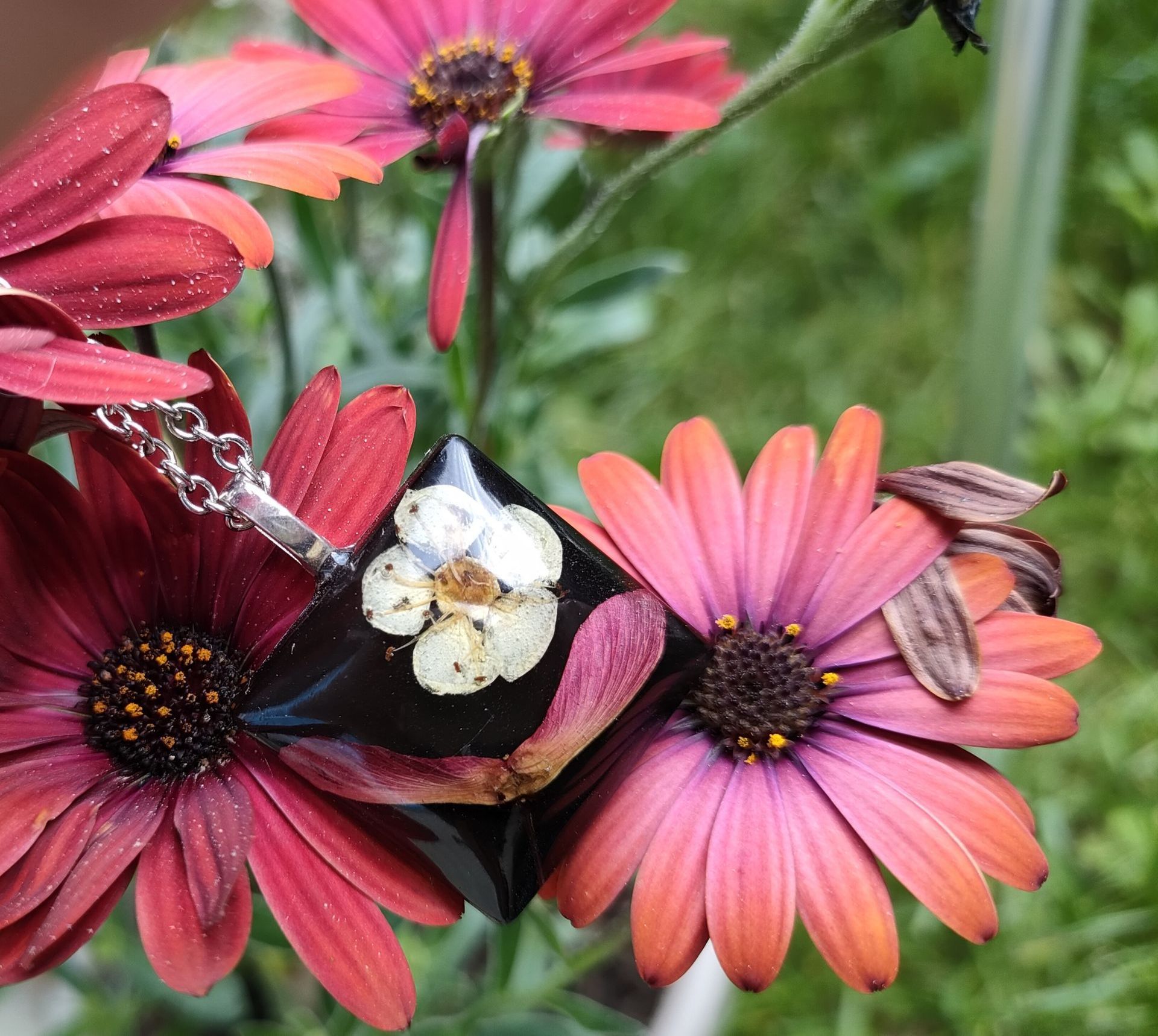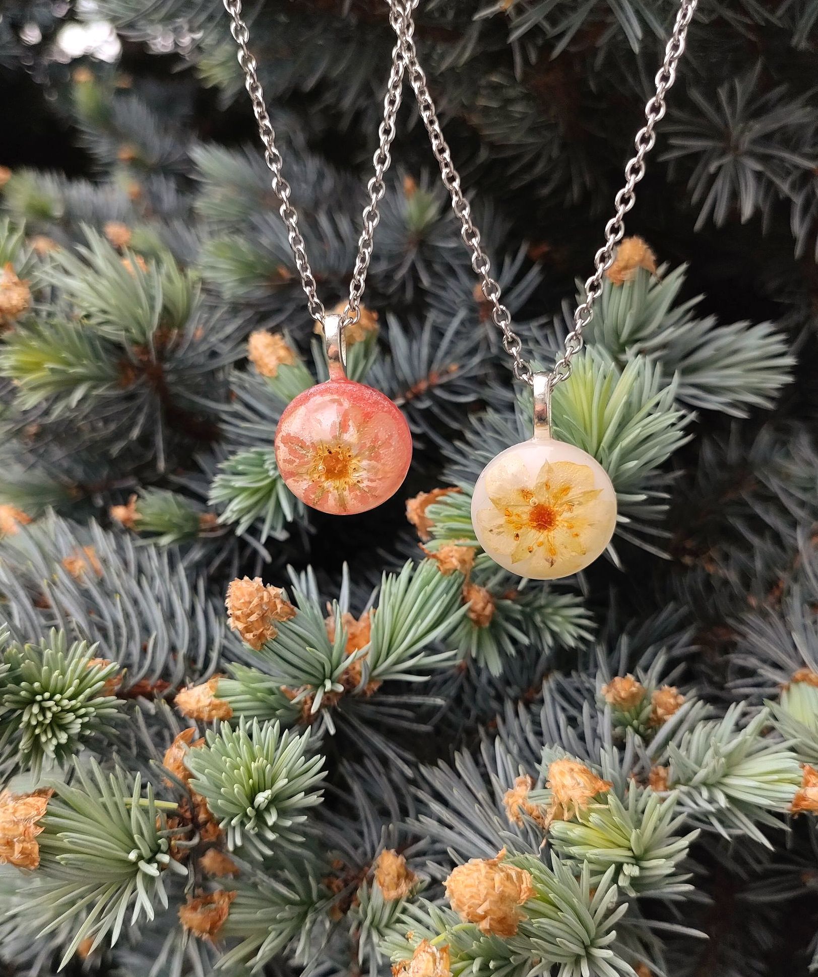 Gemme in resina con fiori e foglie raccolti e essiccati a mano