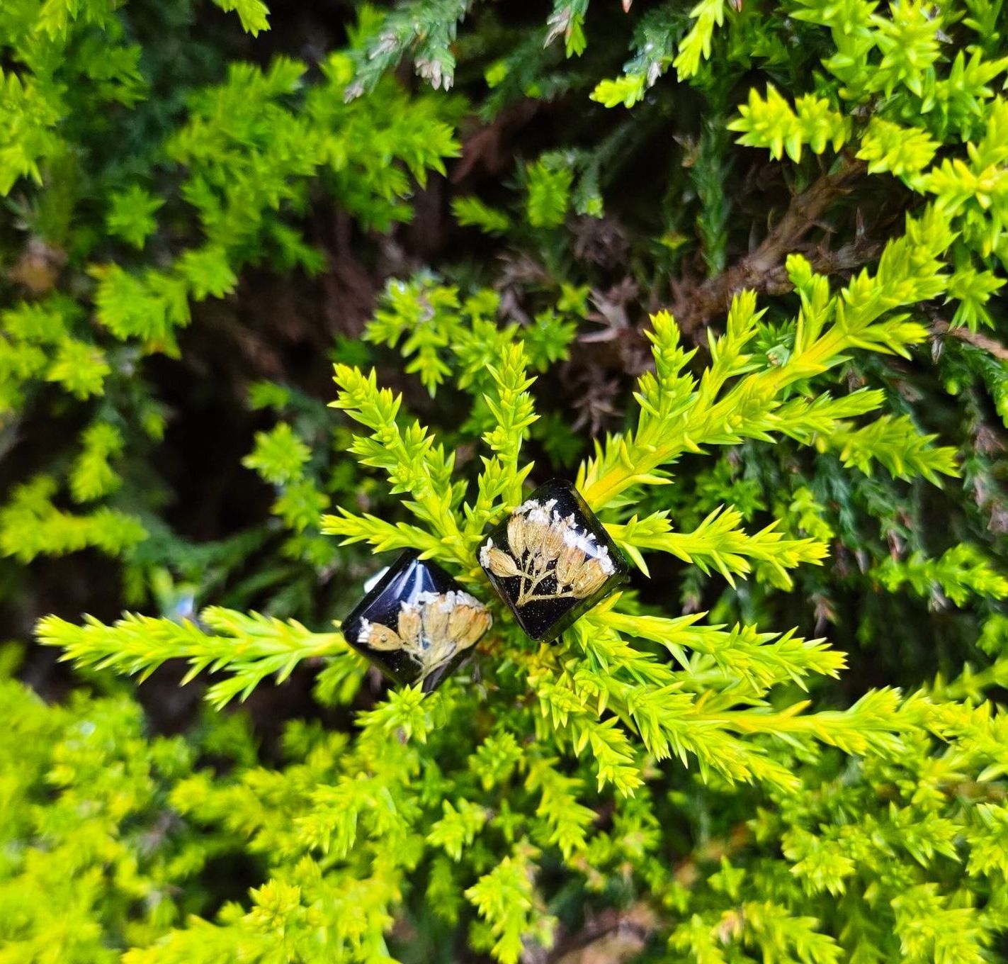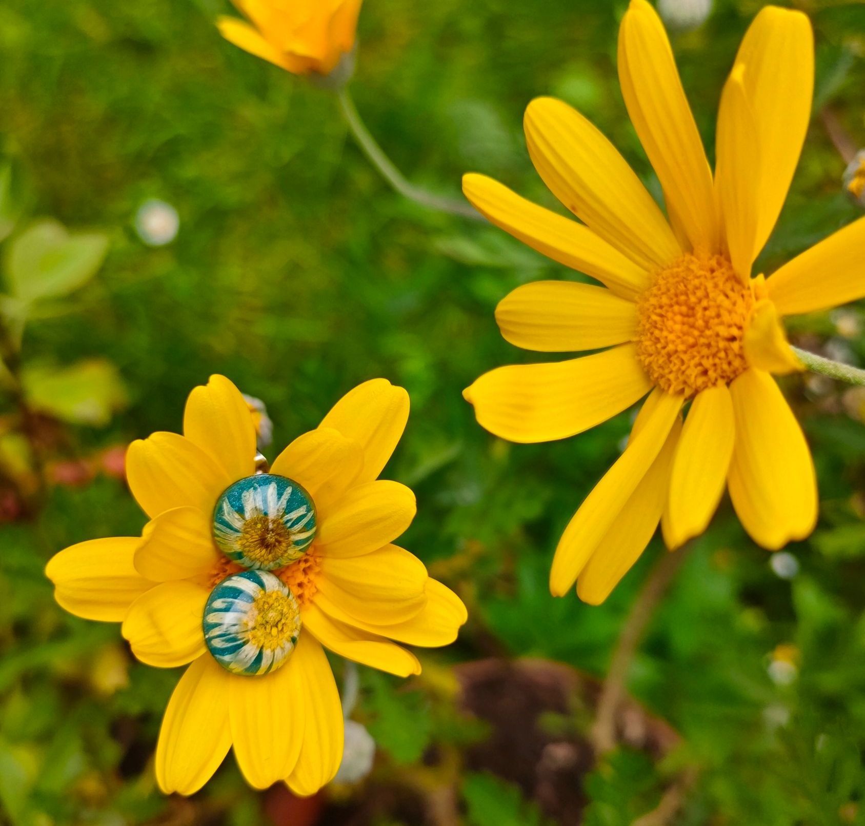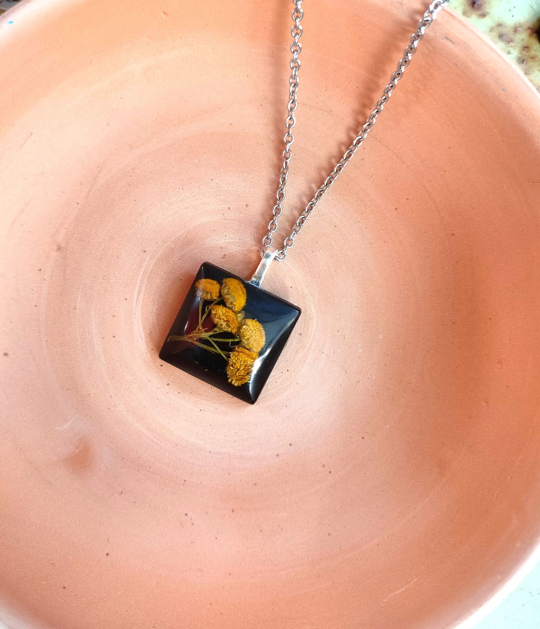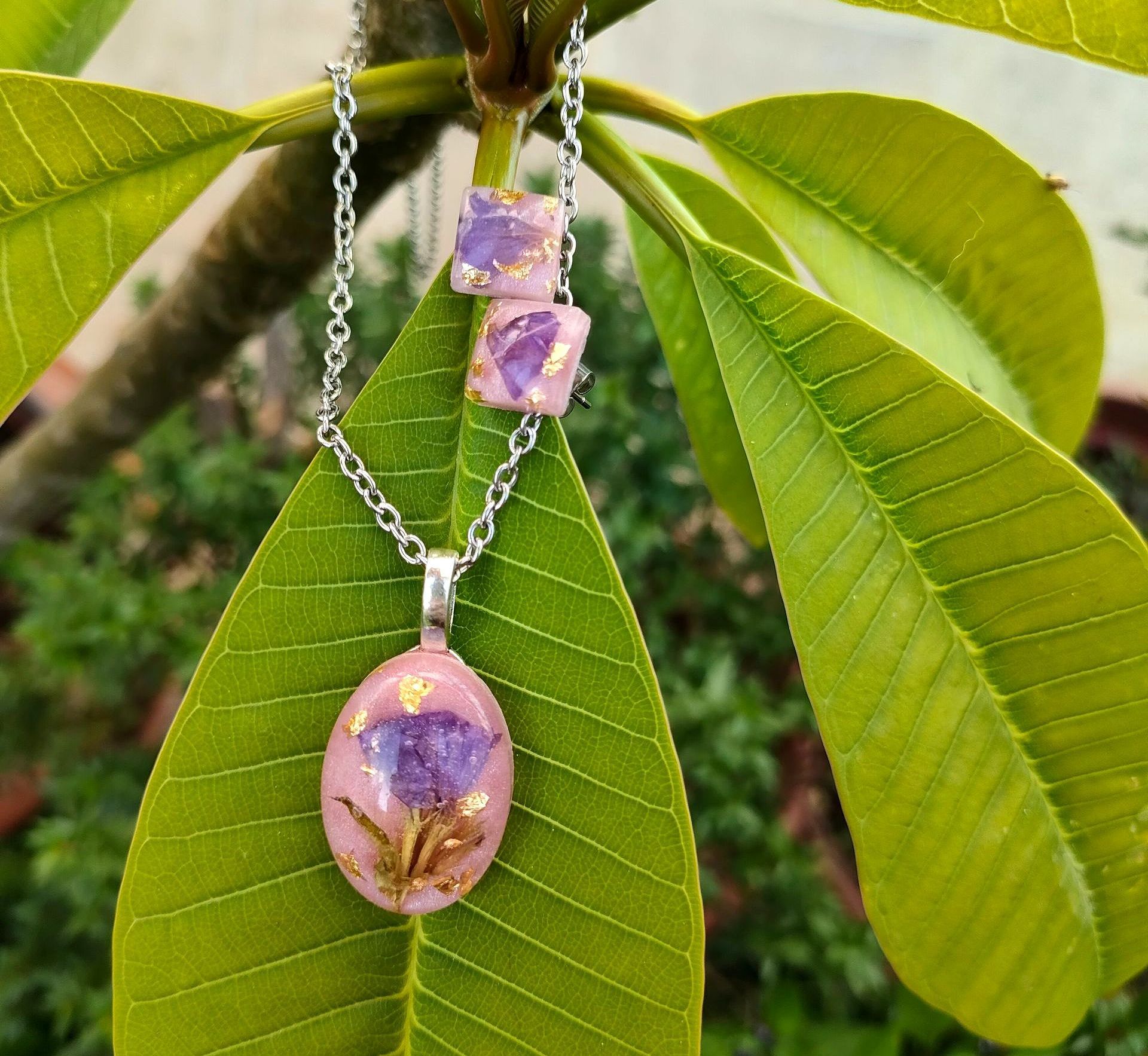 Gemme in resina con fiori e foglie raccolti e essiccati a mano